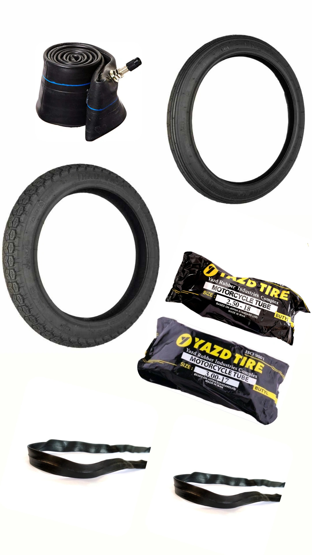 پک اقتصادی ۵ قلمی لاستیک و تیوب برند یزد تایر مدل هندایی